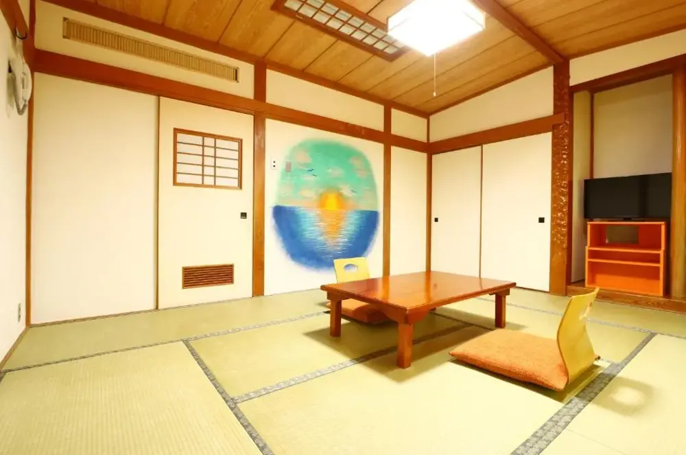 Alojamiento cómodo: Onosou en Onjuku ofrece salas familiares con aire acondicionado, baños privados y wifi gratuito. Cada habitación incluye un té y cafetera, refrigerador, TV y hervidor eléctrico. Instalaciones relajantes: los huéspedes pueden disfrutar de un baño privado al aire libre y un baño compartido. Se proporcionan artículos de tocador y zapatillas gratuitos para mayor comodidad. Ubicación conveniente: ubicado a 48 millas del aeropuerto internacional de Narita, el Ryokan está cerca de atracciones como la estación de Torami (16 millas) y Yoro Keikoku Okukiyosumi Parque Natural Prefectural (17 MI).